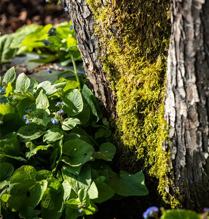 Hoher Blattschmuckwert. Die sommergrünen Blätter des Kaukasus-Vergissmeinnichts sind dunkelgrün, herzförmig.