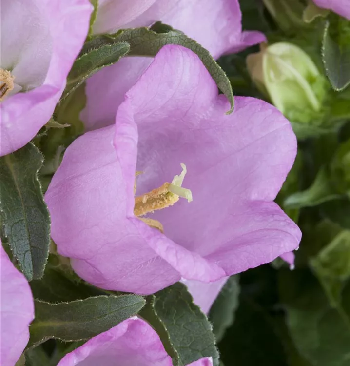Die sommergrünen Blätter der Glockenblume 'Mary Mee'® sind mittelgrün, lanzettlich.