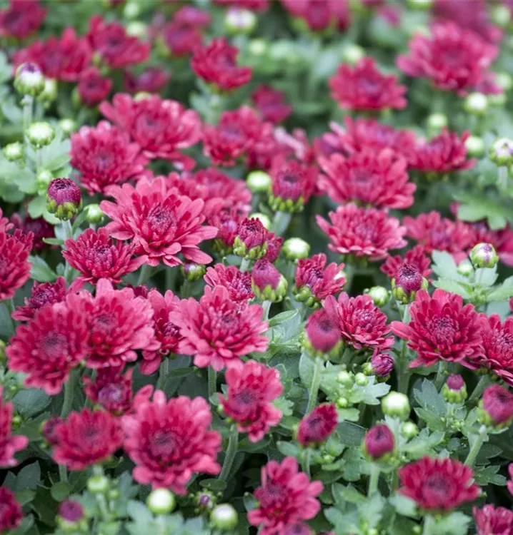 Die Herbst-Chrysantheme (Chrysanthemum indicum) ist eine buschige Staude, die von August bis November gelbe, orangefarbene, rosafarbene, rote oder weiße, körbchenartige Blüten bildet. Ihre gefingerten, Blätter sind mittelgrün. An einem sonnigen, windgeschützten Standort mit durchlässigem Boden erreicht sie gewöhnlich eine Höhe von ca. 80 cm und wird ca. 80 cm breit. Die Herbst-Chrysantheme ist gut frostverträglich.