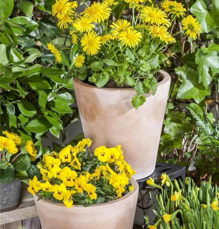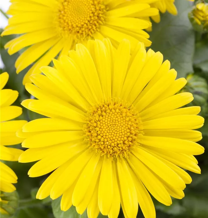 Doronicum orientale bildet körbchenartige, gelbe Blüten ab April.