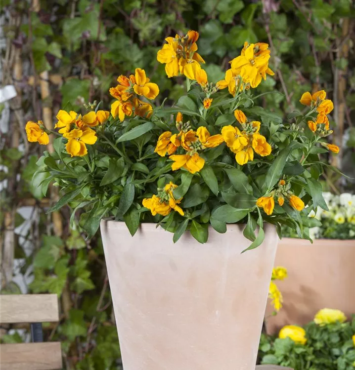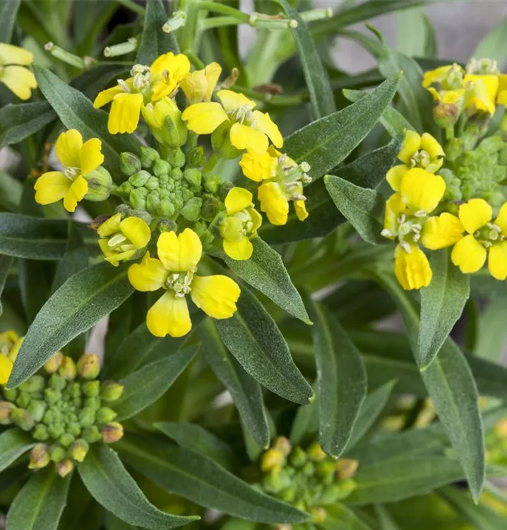 Der Goldlack (Erysimum cheiri) ist eine aufrechte Staude, die, je nach Sorte, Blüten in verschiedenen Farben bildet. An einem sonnigen Standort mit durchlässigem Boden erreicht er gewöhnlich eine Höhe von ca. 60 cm und wird ca. 30 cm breit. Der Goldlack ist an geschützten Standorten gut frostverträglich.