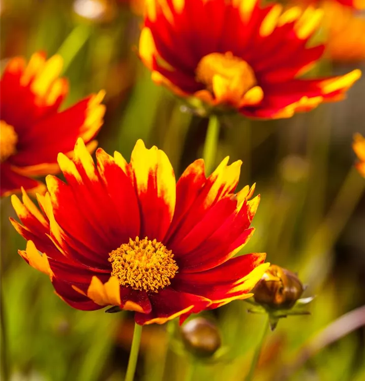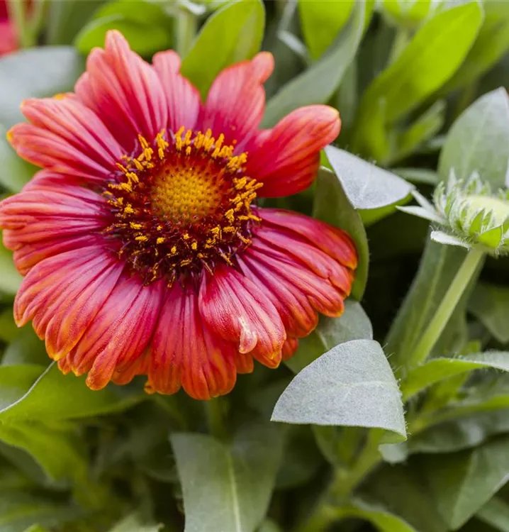 Gaillardia aristata bildet gelb-rote Blüten ab Juli.