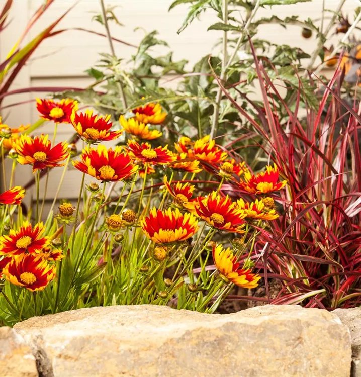 Die Prärie-Kokardenblume (Gaillardia aristata) ist eine aufrechte Staude, die von Juli bis September gelb-rote Blüten bildet. An einem sonnigen Standort mit durchlässigem, humosem, sandigem Boden erreicht sie gewöhnlich eine Höhe von ca. 30 cm und wird ca. 30 cm breit. Die Prärie-Kokardenblume ist gut frostverträglich.