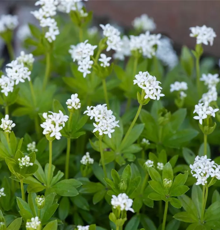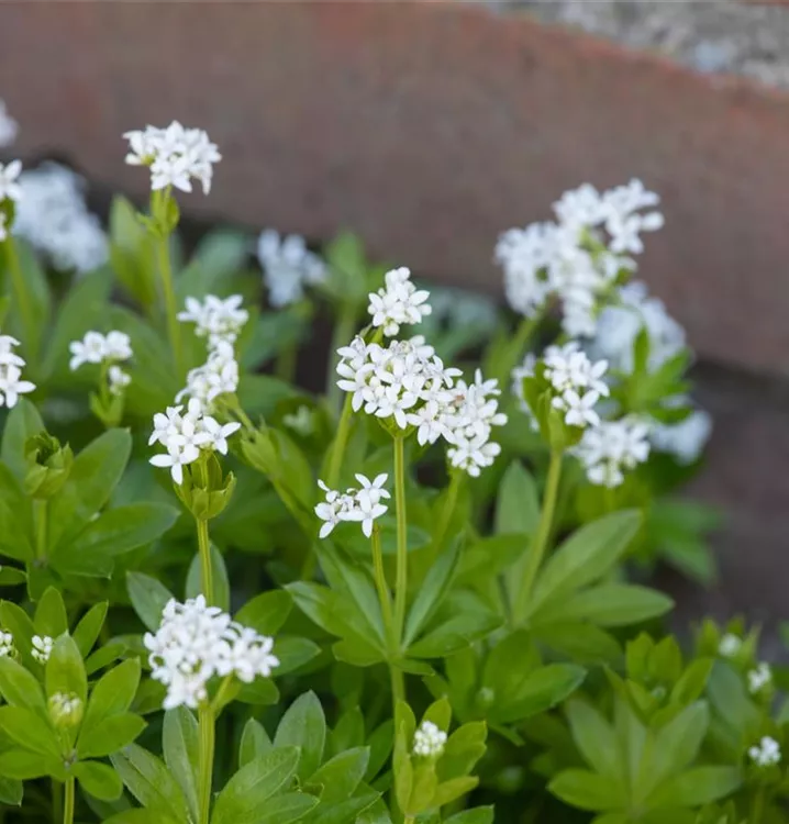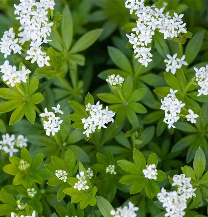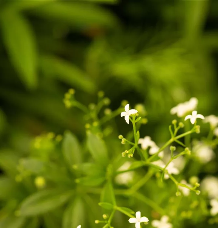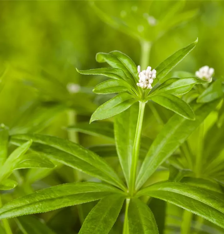 Der Echte Waldmeister (Galium odoratum) ist eine aufrechte Staude, die von April bis Mai weiße Blüten bildet. Seine lanzettlichen, Blätter sind dunkelgrün. An einem halbschattigen bis schattigen Standort mit durchlässigem, humosem, lockerem Boden erreicht er gewöhnlich eine Höhe von ca. 20 cm und wird ca. 25 cm breit. Der Echte Waldmeister ist gut frostverträglich.