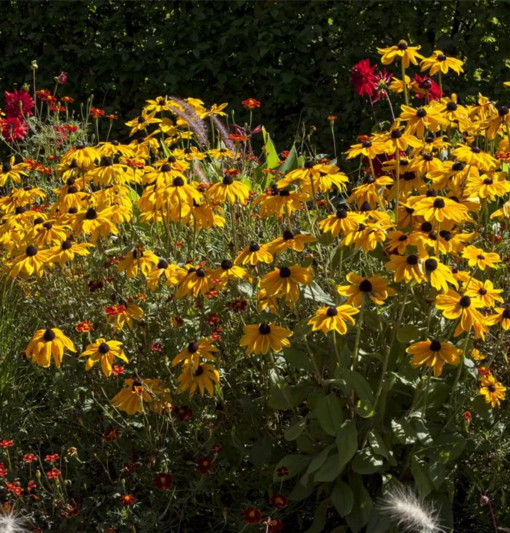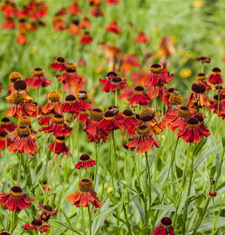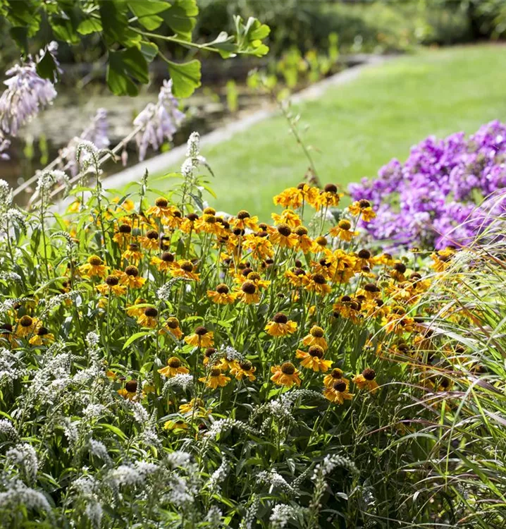 Helenium bildet körbchenartige, gelbe Blüten ab Juli.