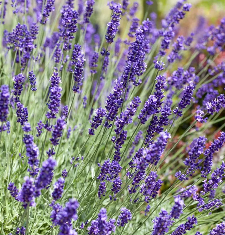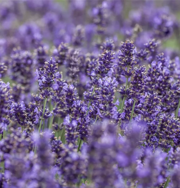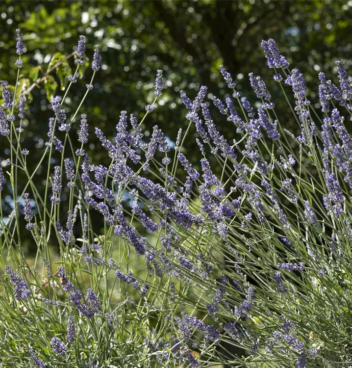 Der Echte Lavendel (Lavandula angustifolia) ist eine buschige, kompakte immergrüne Staude, die von Juni bis Juli blaue Blüten mit einem angenehmen Duft bildet. An einem sonnigen Standort mit durchlässigem, nährstoffreichem Boden erreicht er gewöhnlich eine Höhe von ca. 70 cm und wird ca. 50 cm breit. Der Echte Lavendel ist gut frostverträglich.