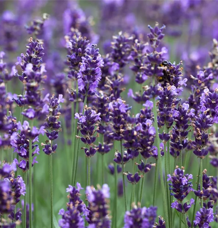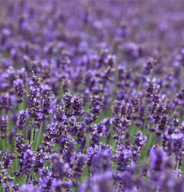 Der Echte Lavendel 'Hidcote Blue' (Lavandula angustifolia) ist eine buschige immergrüne Staude, die von Mai bis August blaue, rachenförmige, in Rispen angeordnete Blüten mit einem angenehmen Duft bildet. An einem sonnigen Standort mit durchlässigem, nährstoffreichem Boden erreicht er gewöhnlich eine Höhe von ca. 40 cm und wird ca. 30 cm breit. Der Echte Lavendel 'Hidcote Blue' ist gut frostverträglich.