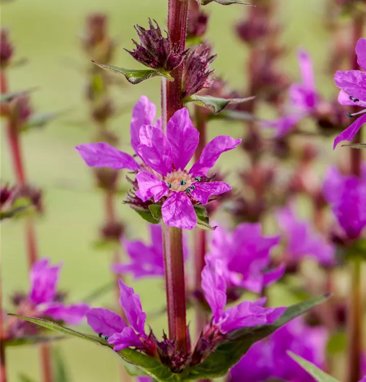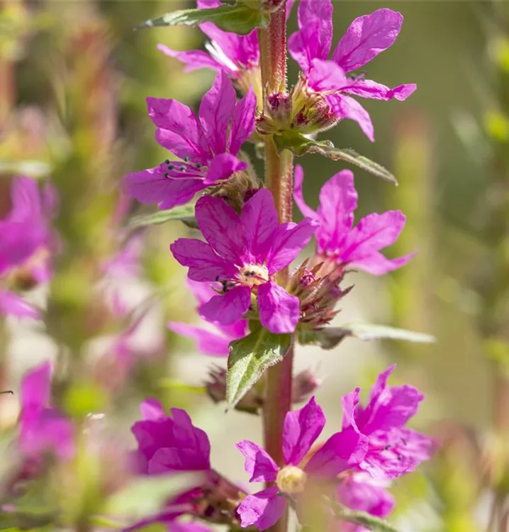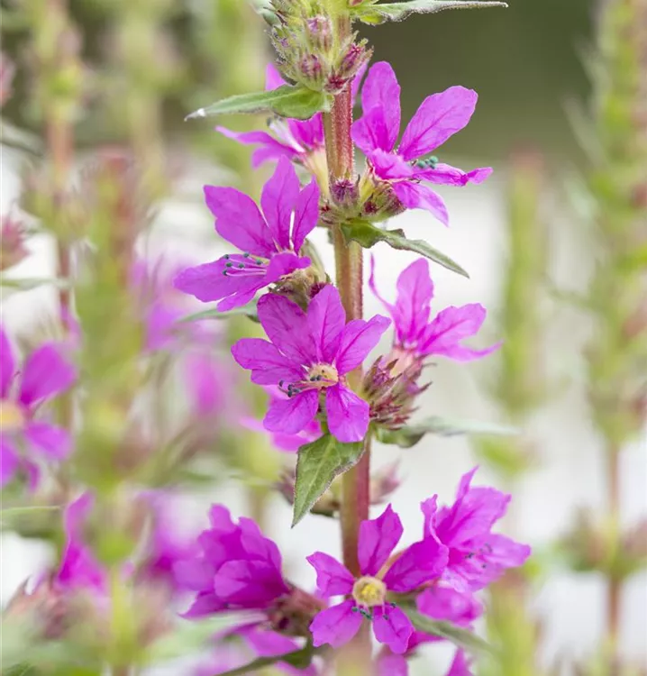 Der Garten-Blut-Weiderich (Lythrum salicaria) ist eine aufrechte, horstbildende Staude, die von Juni bis August pinke, in Quirle angeordnete Blüten mit einem angenehmen Duft bildet. An einem sonnigen bis halbschattigen Standort mit durchlässigem Boden erreicht er gewöhnlich eine Höhe von ca. 80 cm und wird ca. 40 cm breit. Der Garten-Blut-Weiderich ist gut frostverträglich.