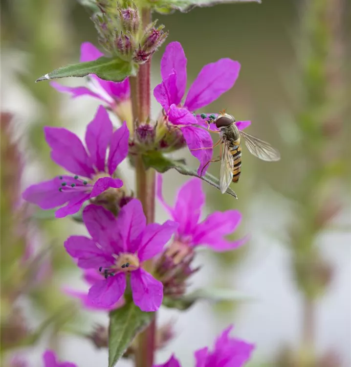 Lythrum salicaria bildet in Quirle angeordnete, pinke Blüten ab Juni. Diese verströmen einen angenehmen Duft.
