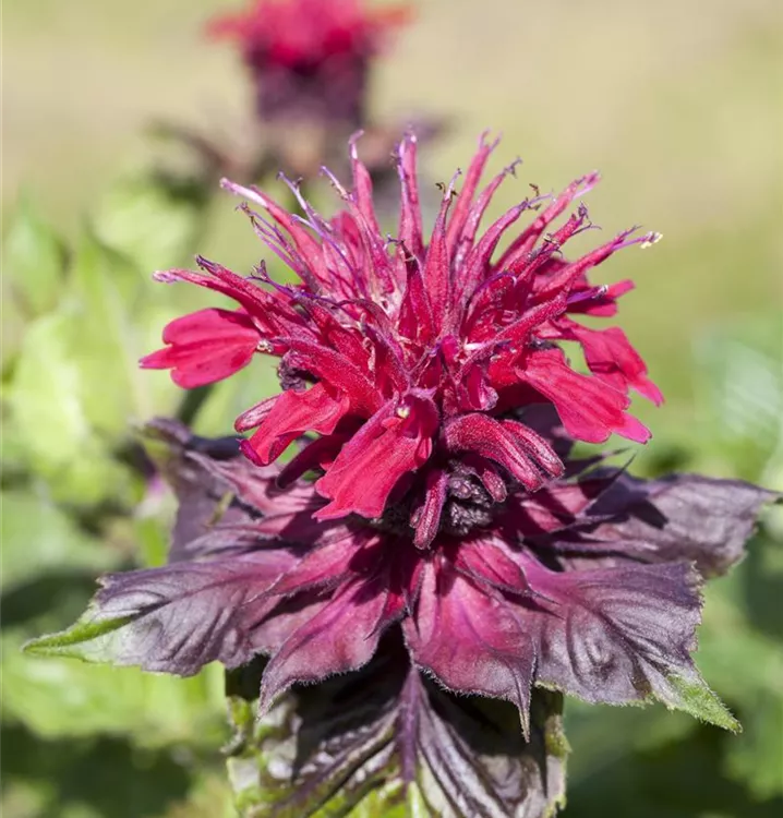 Zum Verzehr geeignet. Monarda didyma bildet scharlachrote Blüten ab Juni.