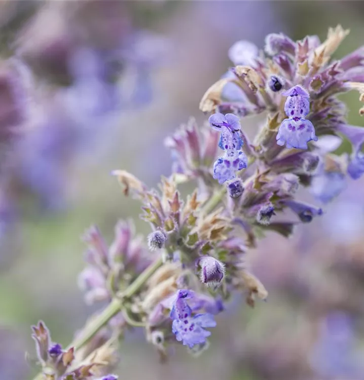 Nepeta x faassenii bildet lippenförmige, blaue Blüten ab Mai.