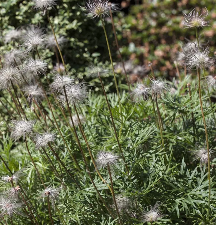 Besonders dekorativ sind die silbrigen Früchte von Pulsatilla vulgaris.