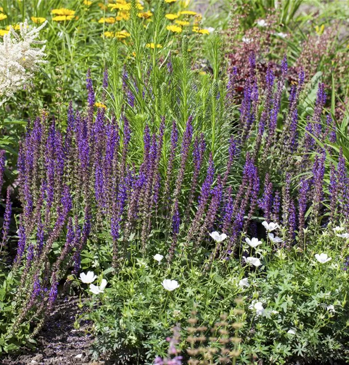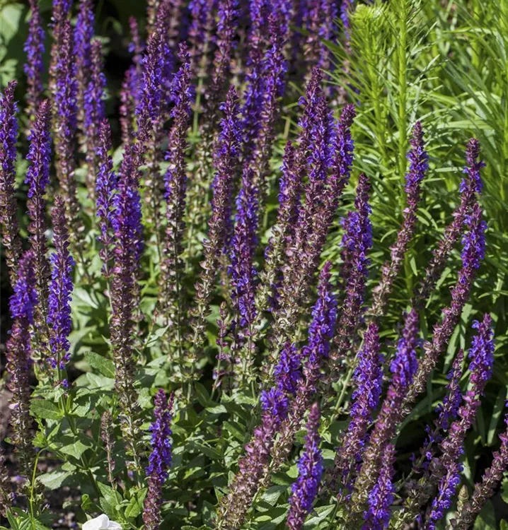 Salvia nemorosa bildet lippenförmige, in Rispen angeordnete, violette Blüten ab Juni. Diese verströmen einen angenehmen Duft. Bei richtiger Pflege Nachblüte im September.