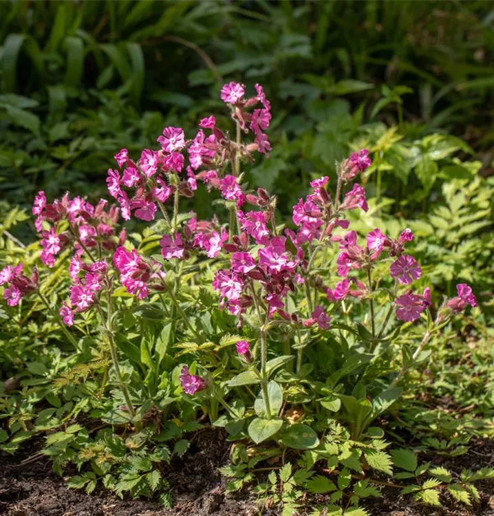 Silene dioica bildet radförmige, rosarote Blüten ab Juni.