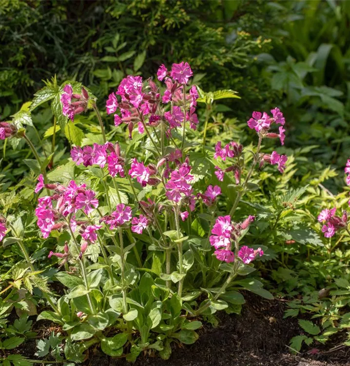 Die Tag-Lichtnelke (Silene dioica) ist eine horstbildende Staude, die von Juni bis September rosarote, radförmige Blüten bildet. An einem sonnigen Standort mit durchlässigem Boden erreicht sie gewöhnlich eine Höhe von ca. 60 cm und wird ca. 40 cm breit. Die Tag-Lichtnelke ist gut frostverträglich.