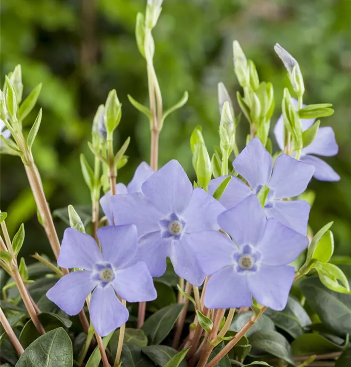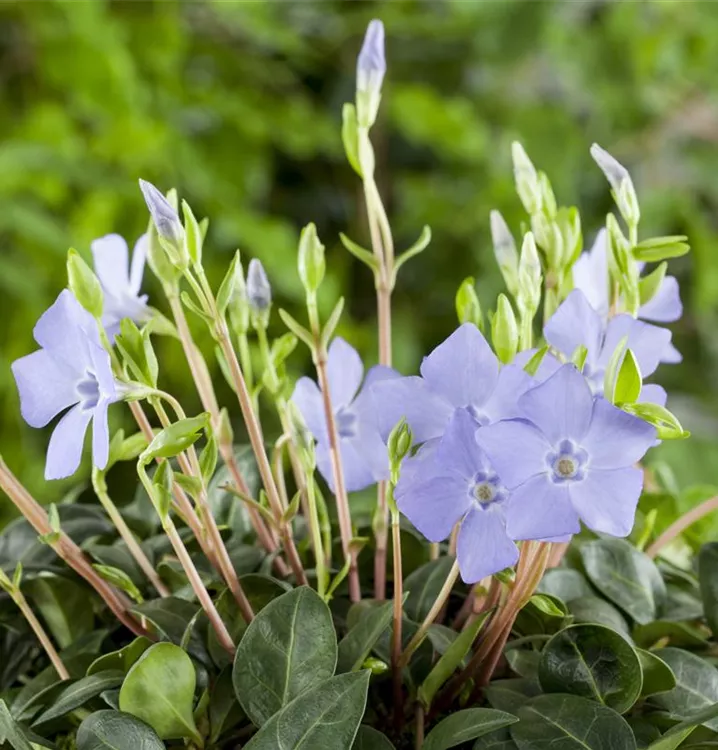Das Kleinblättrige Immergrün (Vinca minor) ist eine kriechende, teppichartige immergrüne Staude mit dekorativen, glänzenden, ledrigen, lanzettlichen, dunkelgrünen Blättern. An einem sonnigen bis schattigen Standort mit durchlässigem, humosem, lockerem Boden erreicht es gewöhnlich eine Höhe von ca. 30 cm und wird ca. 50 cm breit. Das Kleinblättrige Immergrün ist gut frostverträglich.