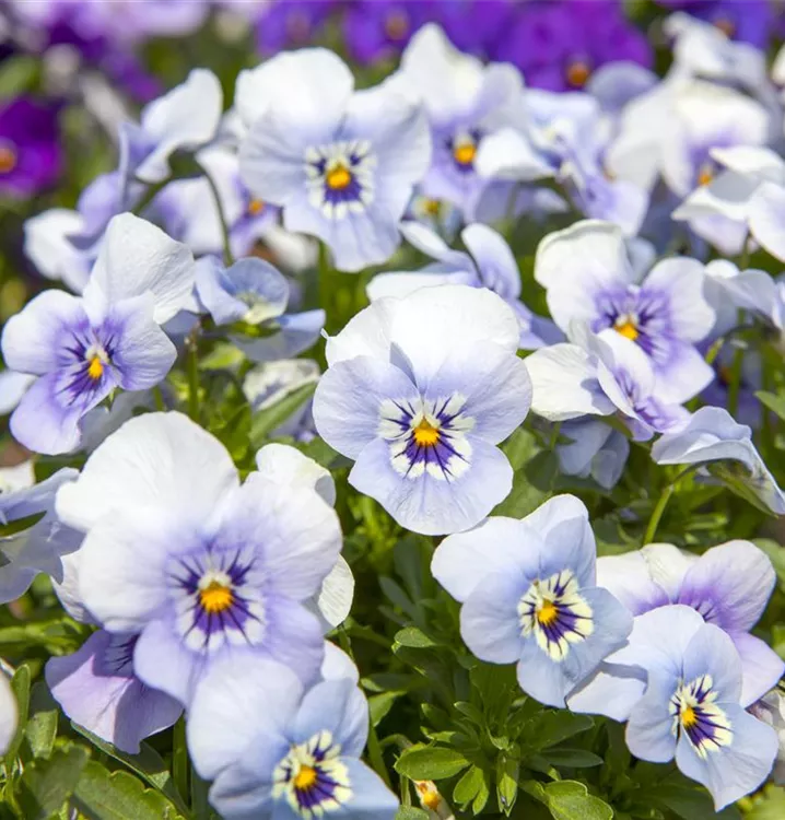 Zum Verzehr geeignet. Je nach Sorte, bildet Viola cornuta Blüten in verschiedenen Farben. Bei richtiger Pflege Nachblüte von September bis Oktober.