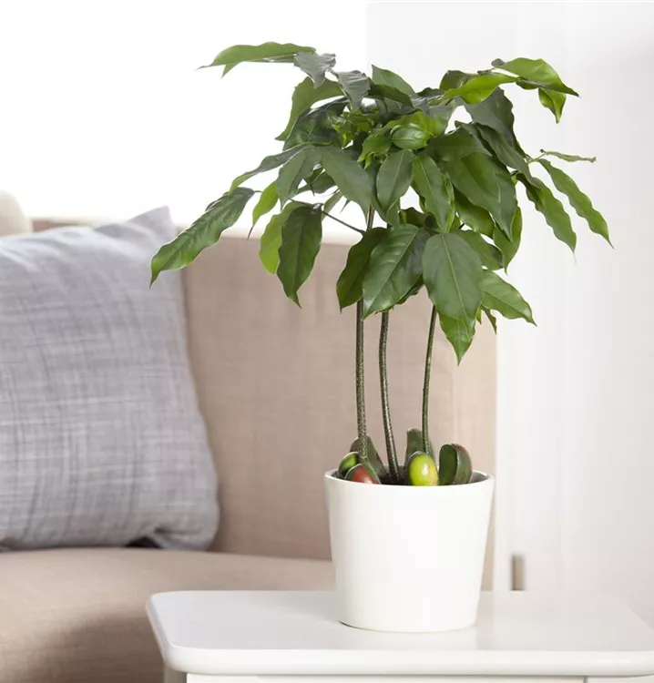• Für eine hohe Luftfeuchtigkeit ist gesorgt, indem das Pflanzgefäß in mit Kieseln und Wasser gefüllte Untersetzer gestellt wird. Bei höheren Temperaturen sollte die Pflanze regelmäßig mit weichem, kalkfreiem Wasser besprüht werden.