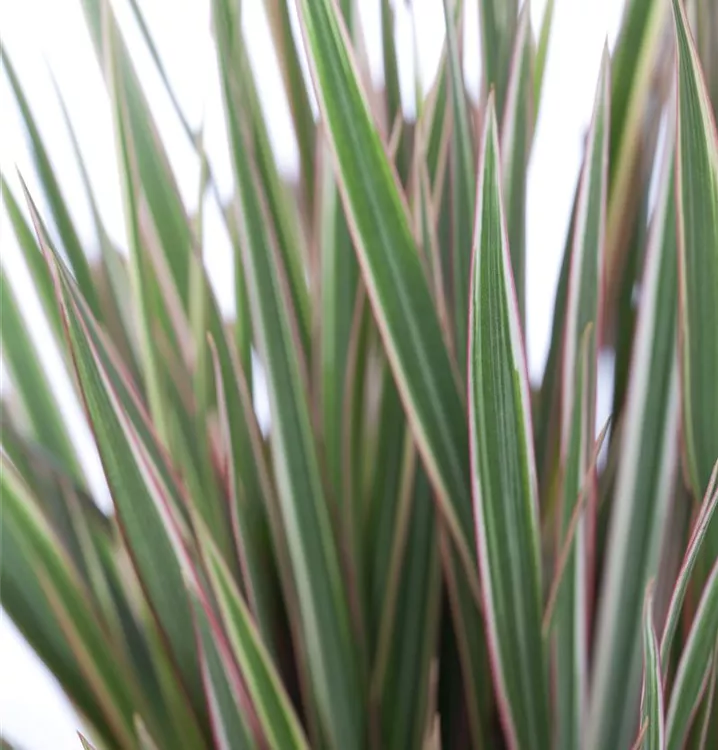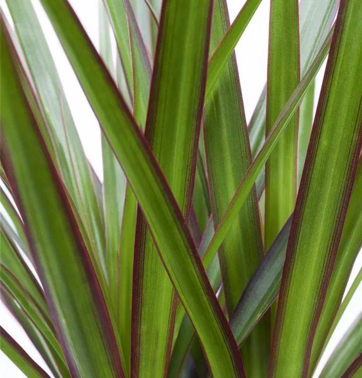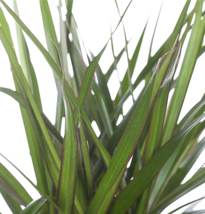 Hoher Blattschmuckwert. Die immergrünen Blätter des Drachenbaums sind dunkelgrün, lineal und weisen einen dunkelroten Rand auf.