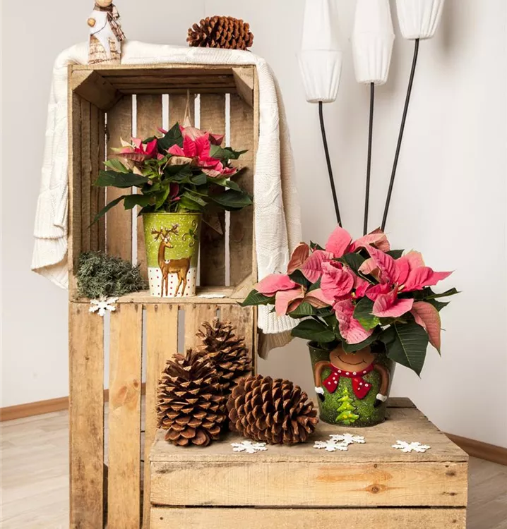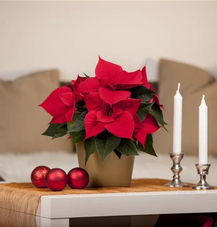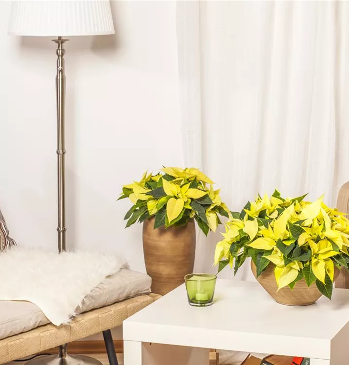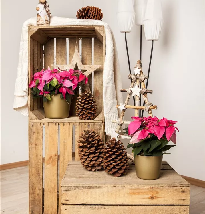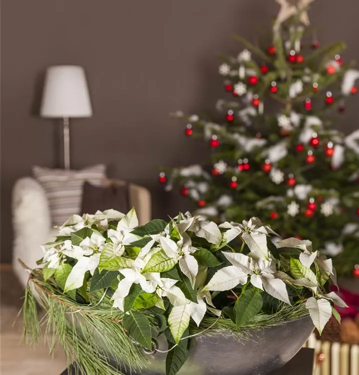 Der Weihnachtsstern (Euphorbia pulcherrima) blüht über Monate hinweg. Je nach Sorte, erscheinen die dekorativen Blüten in den Farben Rot, Rosa und Weiß. Bevorzugt wird ein sonniger Standort und eine durchlässige Erde.