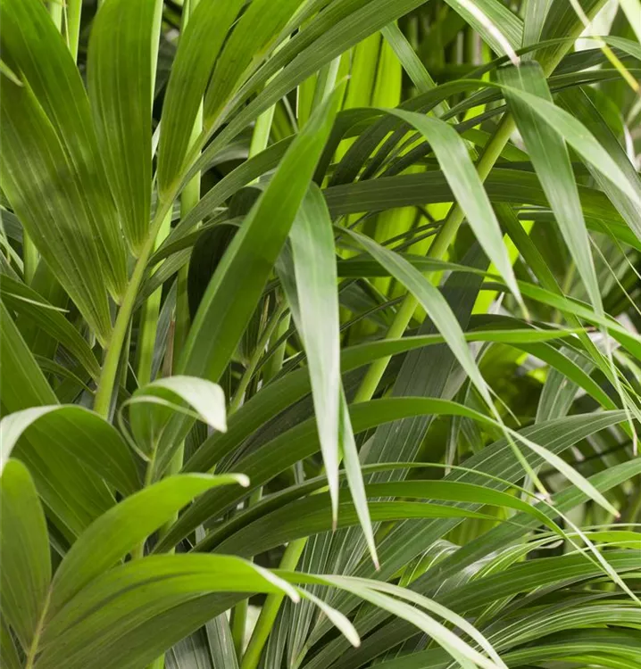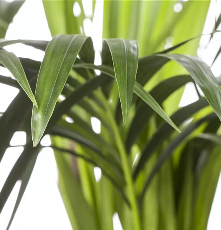 Die immergrünen Blätter der Kentiapalme sind dunkelgrün, tief geschlitzt.