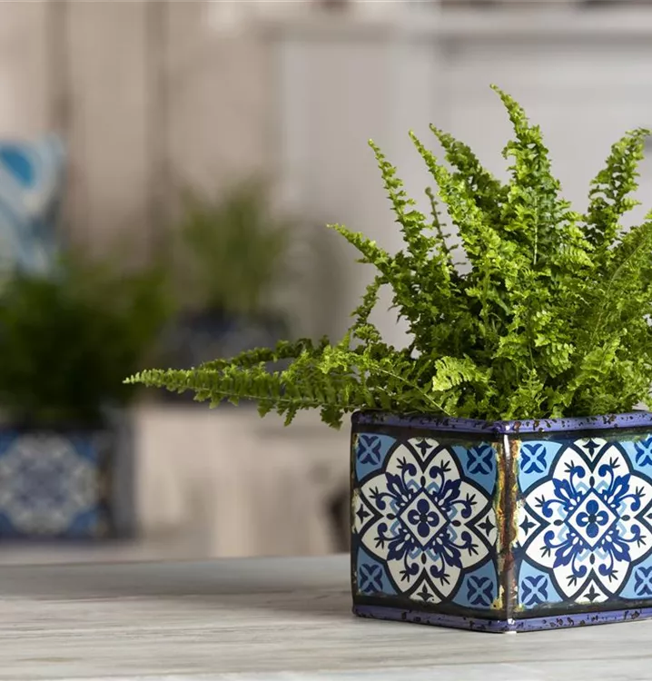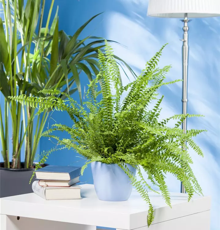 Der Schwertfarn (Nephrolepis exaltata) ist mit seinen gefiederten, mittelgrünen Blattwedeln eine dekorative Zimmerpflanze. An einem sonnigen bis halbschattigen Standort un in einer durchlässigen, nährstoffreichen Erde fühlt er sich am wohlsten. Bei günstigen Bedingungen erreicht dieser Farn eine Höhe von ca. 1 m und wird bis zu 1 m breit.