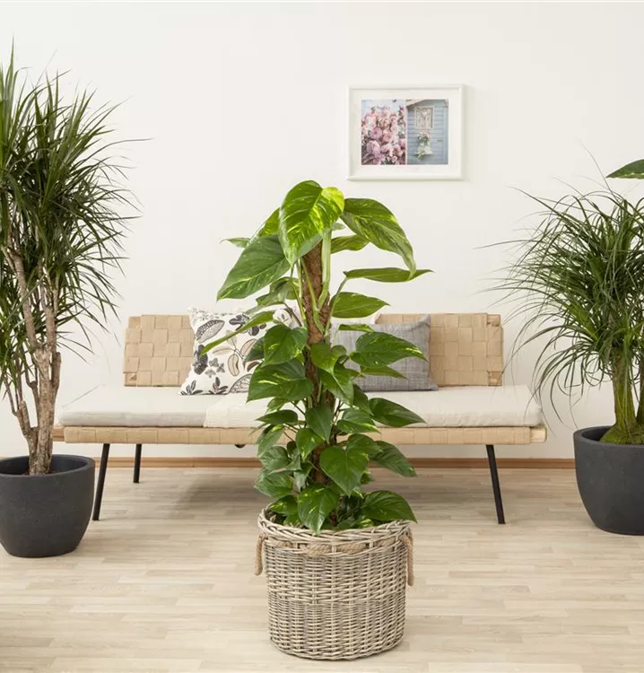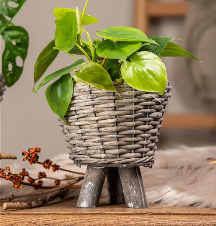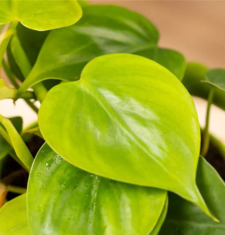Die Blätter des Philodendrons sind dunkelgrün, herzförmig.