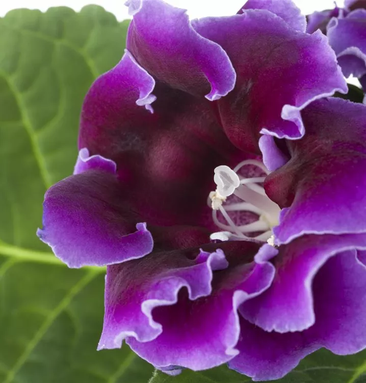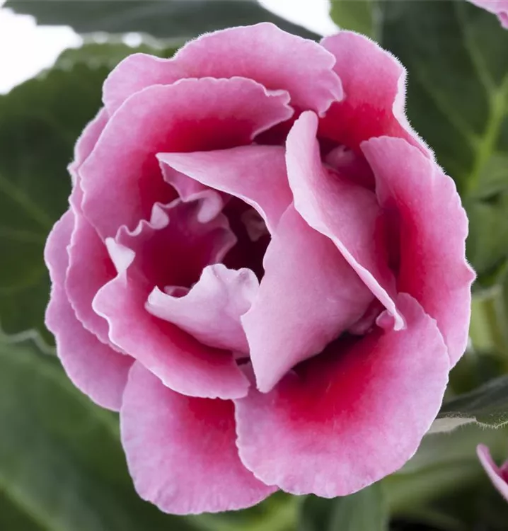 Die Falsche Gloxinie (Sinningia speciosa) blüht über Monate hinweg. Je nach Sorte, erscheinen die dekorativen Blüten in den Farben Rosa, Rot, Violett und Zweifarbig. Die matten, eiförmigen Blätter sind gekerbt. Bevorzugt wird ein heller Standort und eine durchlässige Erde.