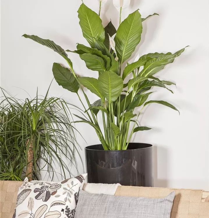 Die Blattfahne (Spathiphyllum floribundum) ist eine weiß blühende Pflanze, die lanzettliche, dunkelgrüne Blätter trägt. Diese buschige und aufrechte Pflanze gedeiht am besten an einem halbschattigen bis schattigen Standort.