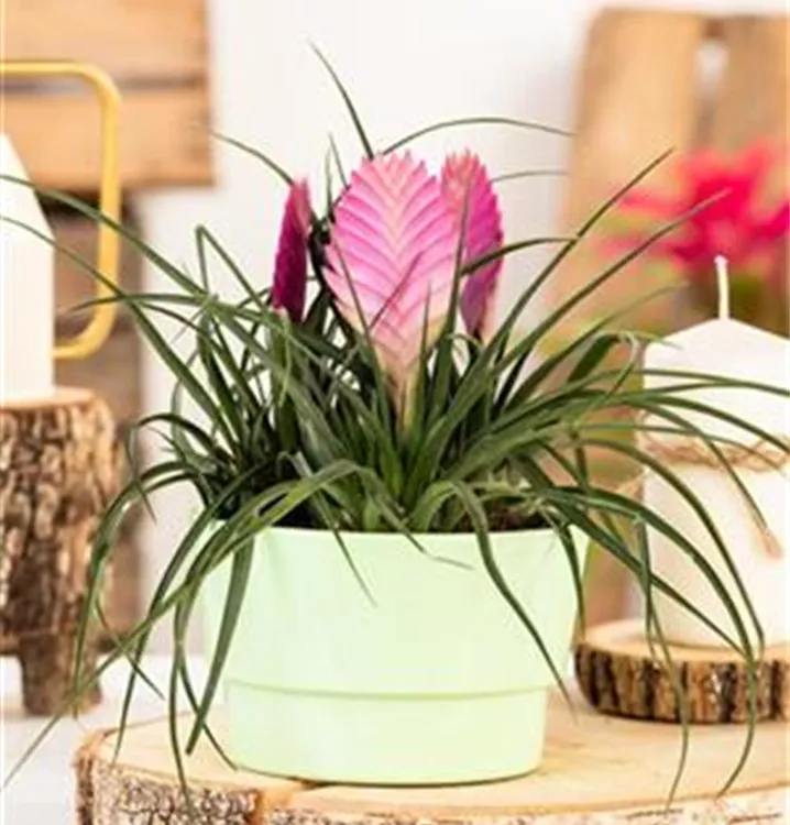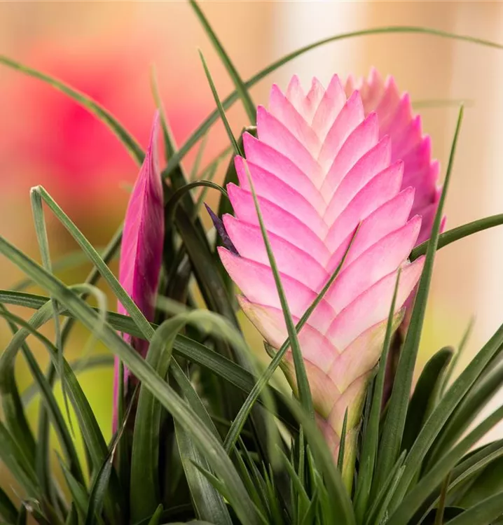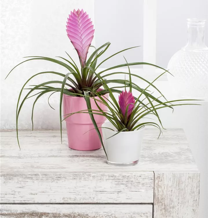Die Tillandsie (Tillandsia) blüht über Monate hinweg. Je nach Sorte, erscheinen die dekorativen Blüten in den Farben Weiß, Gelb, Orange, Rot und Rosa. Bevorzugt wird ein sonniger bis halbschattiger Standort und eine durchlässige Erde.