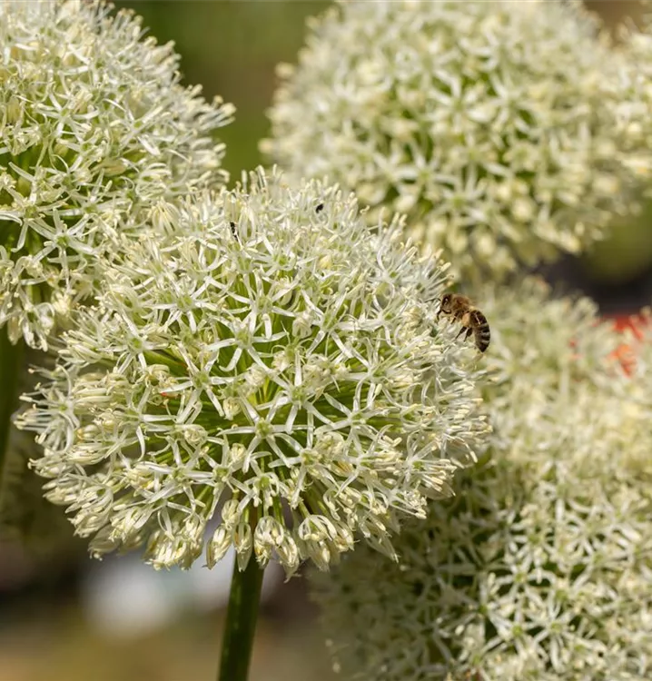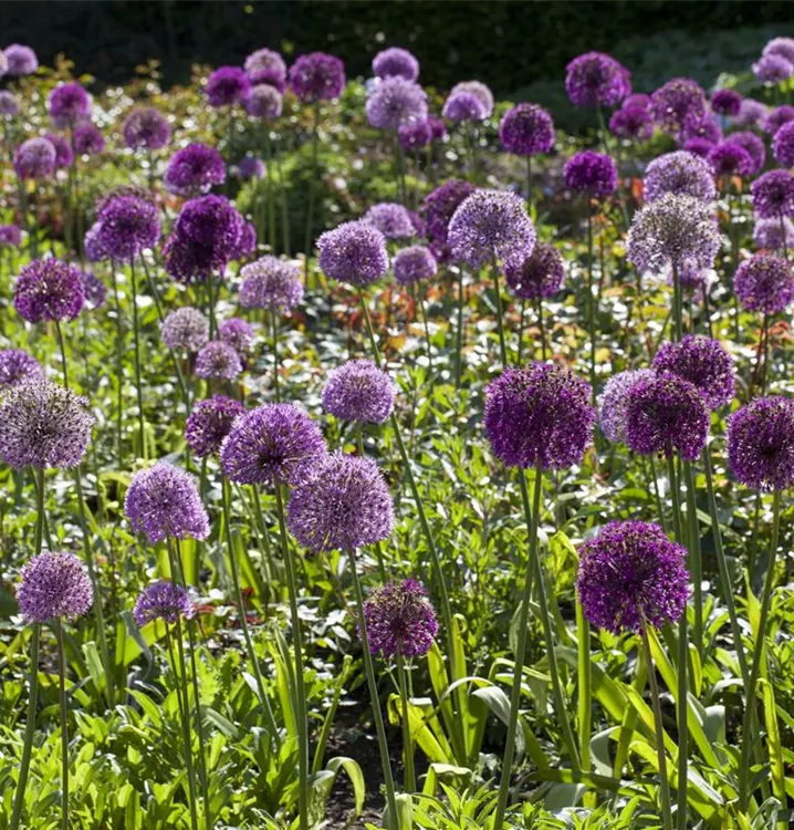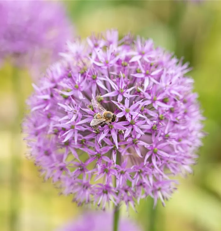 Die violetten Blüten des Riesenlauch erscheinen in Dolden von Mai bis Juli.