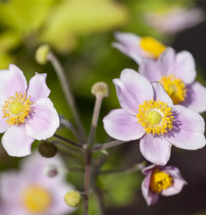 Die Garten-Herbst-Anemone (Anemone japonica) bringt ansehnliche, rosafarbene Blüten von August bis Oktober hervor. Bevorzugt wird ein durchlässiger, humoser Boden in sonniger bis halbschattiger Lage. Die rhizombildende, aufrechte Pflanze erreicht gewöhnlich eine Höhe von 60 - 80 cm und wird bis zu 40 cm breit.