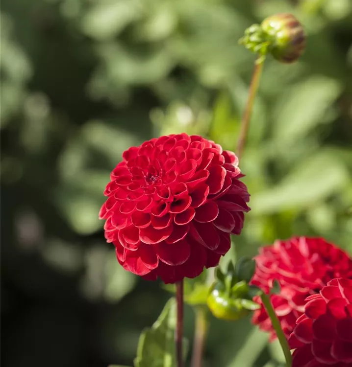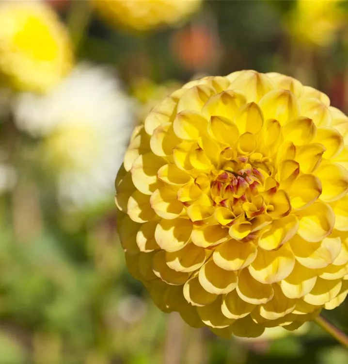 Dahlien waren bereits in Großmutters Bauerngarten der Star und kommen auch heute nicht aus der Mode. Die hübschen Blütenbälle öffnen sich im Juni und blühen bis in den Herbst hinein. Ursprünglich stammen Dahlien aus Mexiko. Weltweit sind etwa 25.000 Sorten bekannt. Die Blütenbildung dieser sonnenliebenden Pflanze können Sie mit Kompostgaben fördern. Ein geschützter Standort ist ideal, Staunässe wird nicht vertragen. Die Knollen müssen vor den ersten Nachtfrösten ausgegraben werden.