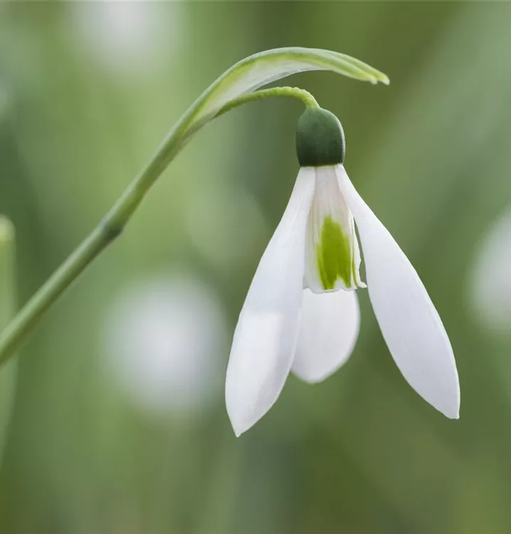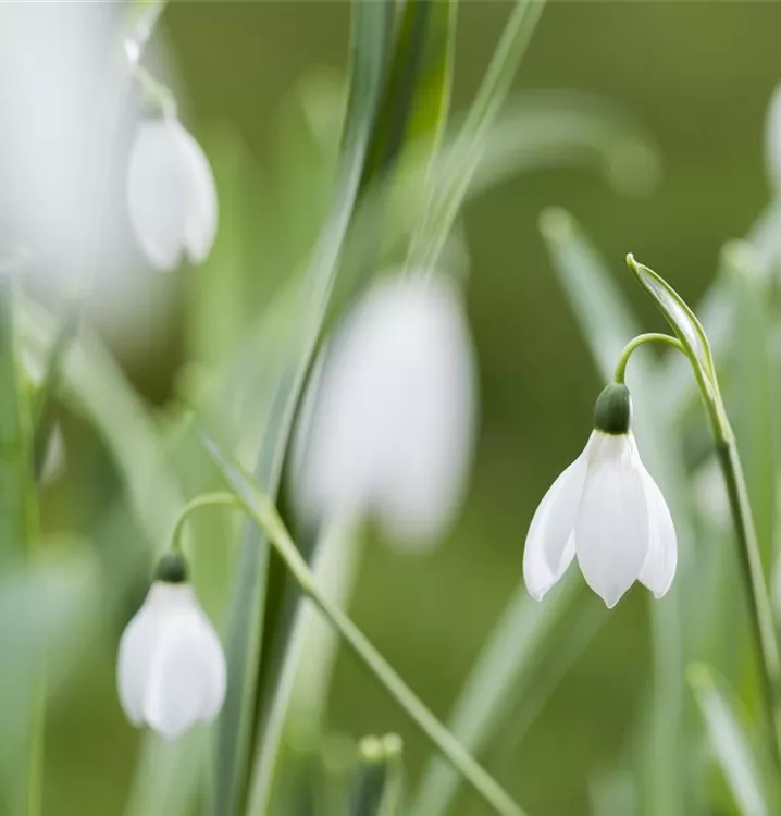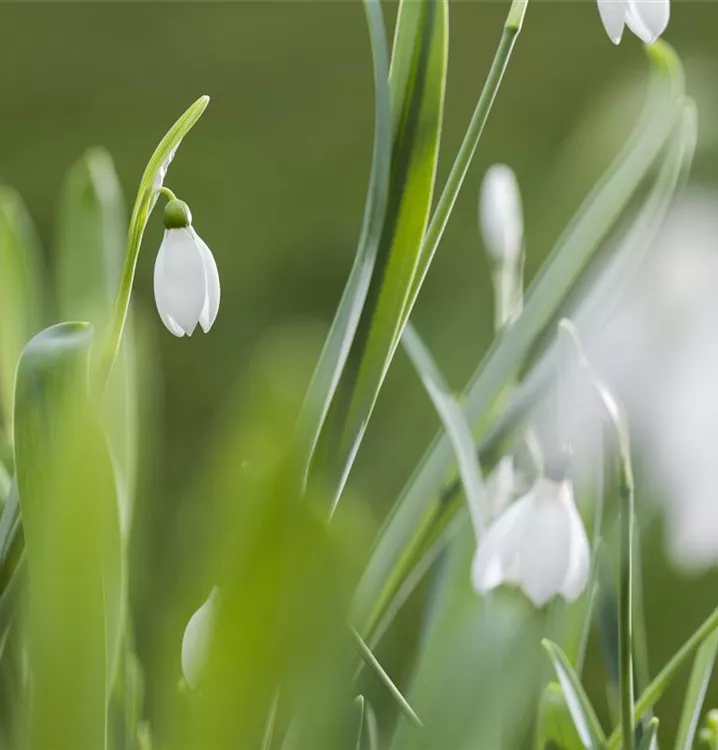 Das Kleine Schneeglöckchen (Galanthus nivalis) bringt ansehnliche, weiße, angenehm duftende Blüten von Januar bis März hervor. Bevorzugt wird ein durchlässiger, humoser Boden in sonniger bis halbschattiger Lage. Die aufrechte Staude erreicht gewöhnlich eine Höhe von 10 - 15 cm und wird bis zu 5 cm breit.